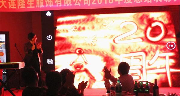 2019年1月18日,大連隆生服飾有限公司2018年度總結(jié)表彰大會暨2019新春聯(lián)歡晚會隆重舉行!公司全體同仁和部分家屬齊聚一堂,回顧往績,展望新年。歡聲笑語,把酒言歡之際,大連隆生創(chuàng)立20周年倒計時也正式啟動!