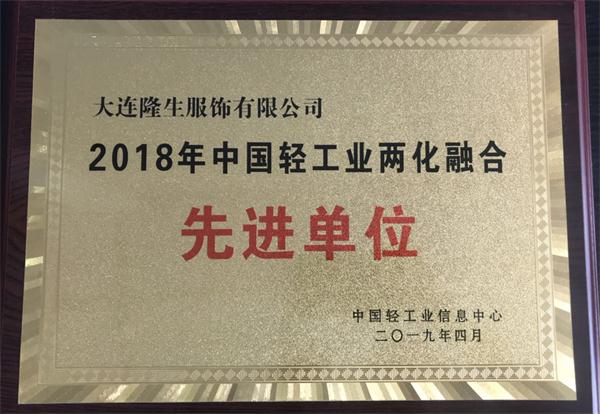 憑借近年來在信息化、智能化建設方面的突出表現(xiàn),大連隆生服飾有限公司榮獲“2018年中國輕工業(yè)兩化融合先進單位”獎