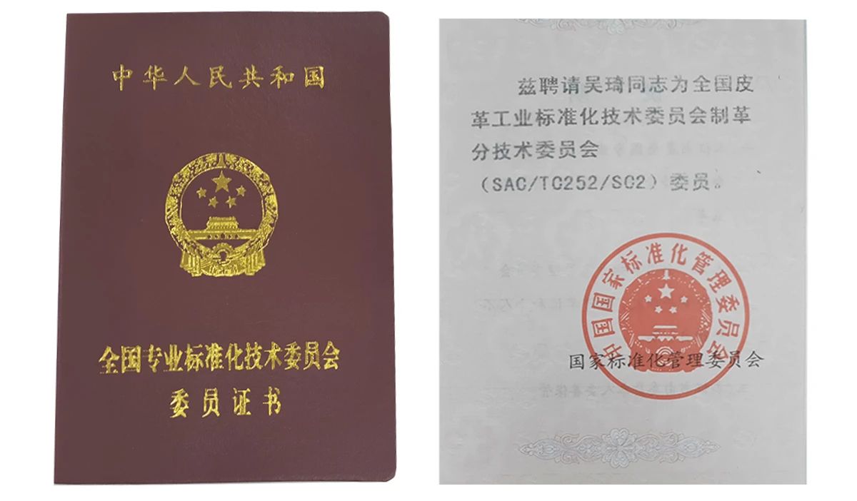 董事長吳琦女士更是被國家標(biāo)準(zhǔn)化管理委員會(huì)聘請(qǐng)為“全國皮革工業(yè)標(biāo)準(zhǔn)化技術(shù)委員會(huì)制革分技術(shù)委員會(huì)委員”,今年已開始連續(xù)第二屆任期。
